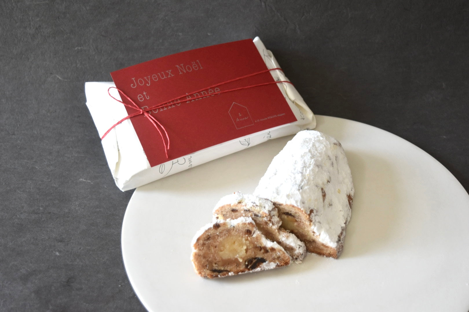 滋賀県産の黒イチジクなどのドライフルーツやナッツがたっぷり入った、グルテンフリーのシュトレン。気持ち華やぐ季節にいかがでしょうか。