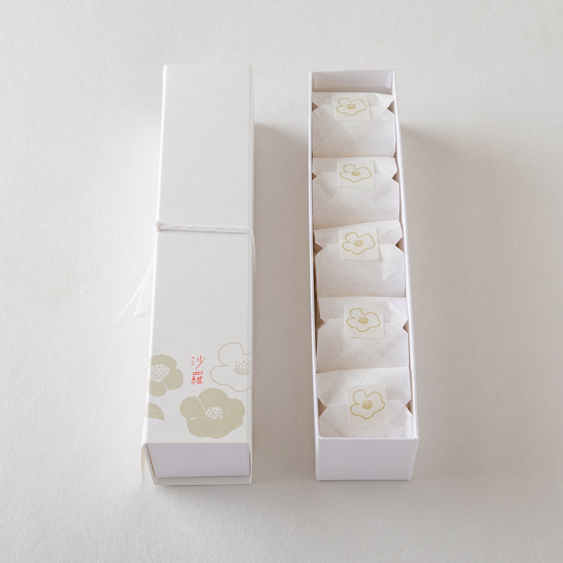 彦根にある龍潭寺には樹齢四百年といわれる沙羅の木があります。ご住職が「しゃら」と呼ばれていた響きが心地よく、そのまま菓子の銘にしました。