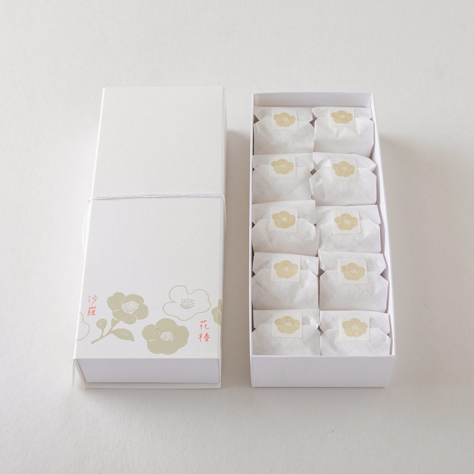 黄身餡を希少なルビーチョコレートで包み苺パウダーをまとわせ、椿に見立てています。ほどよい甘さと酸味をお楽しみください。