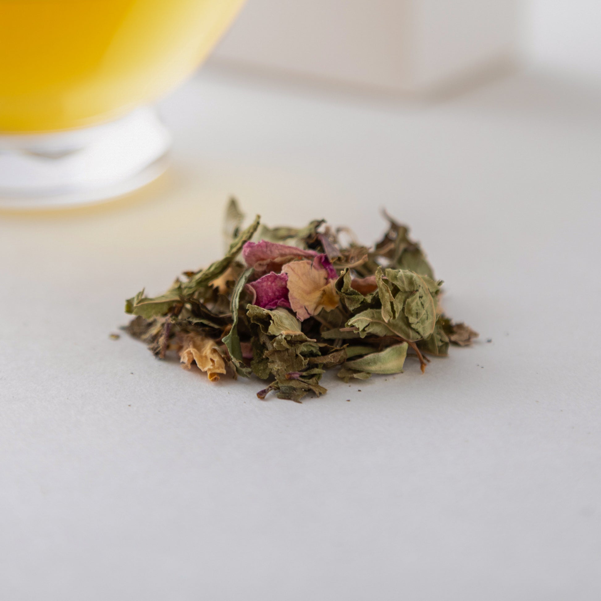レモンバーベナ・ペパーミント・ローズピンク・ローズマリー・ラベンダーの有機ハーバルブレンドティーです。
