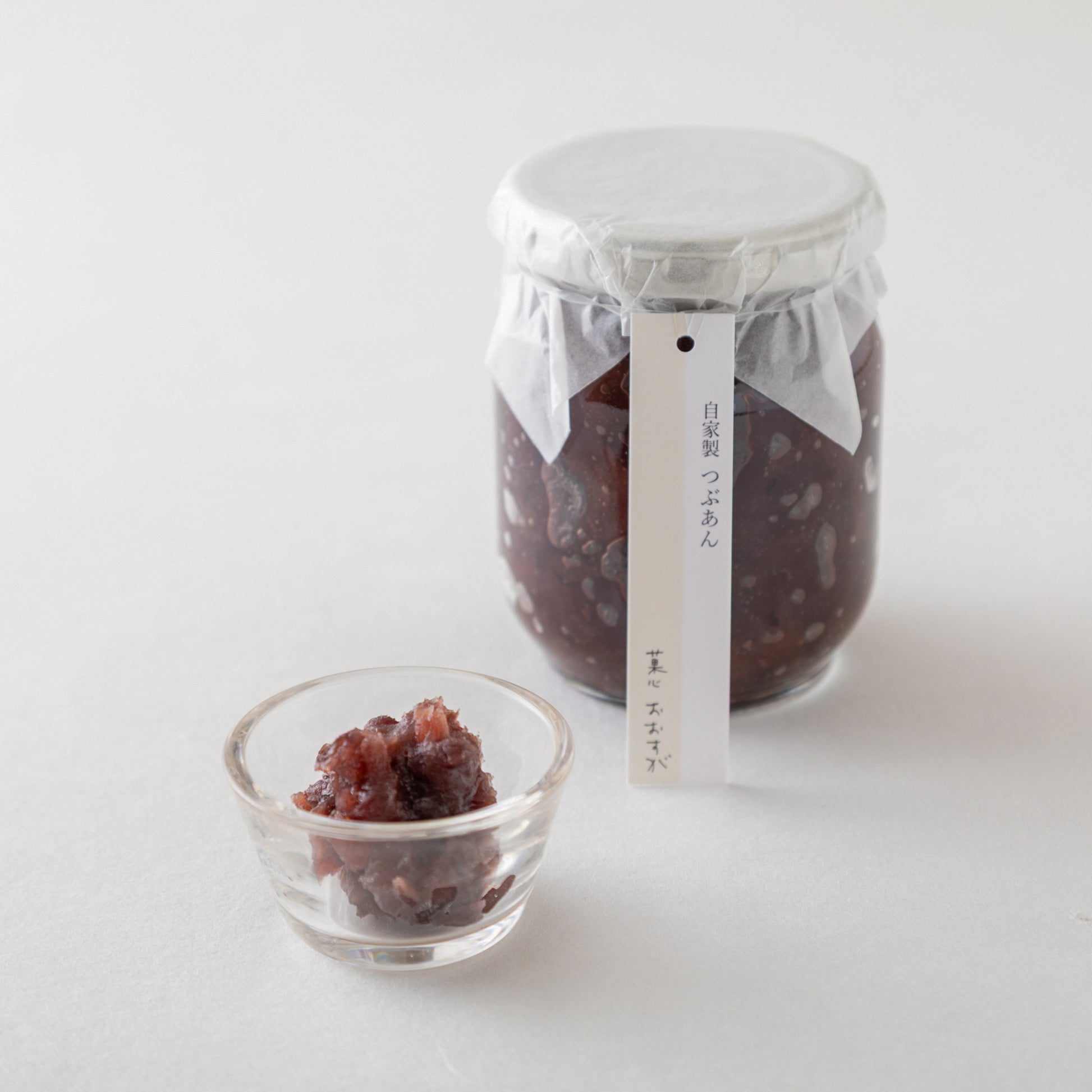 看板商品の「三十五万石」にも使用している自慢の自家製つぶ餡を瓶に詰めました。