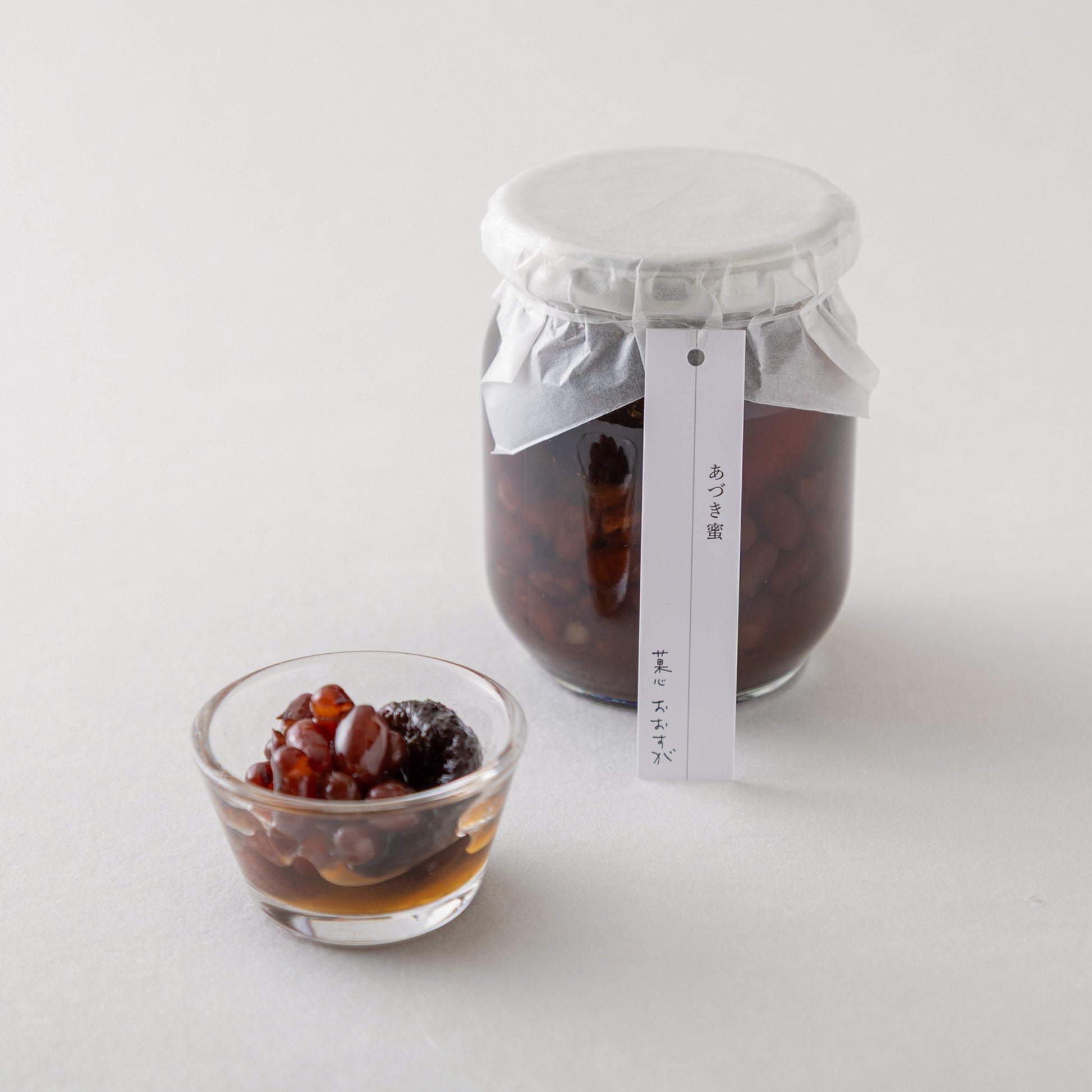 大納言小豆を熟成味醂シロップに有機プルーンとシナモンと共に漬けました。