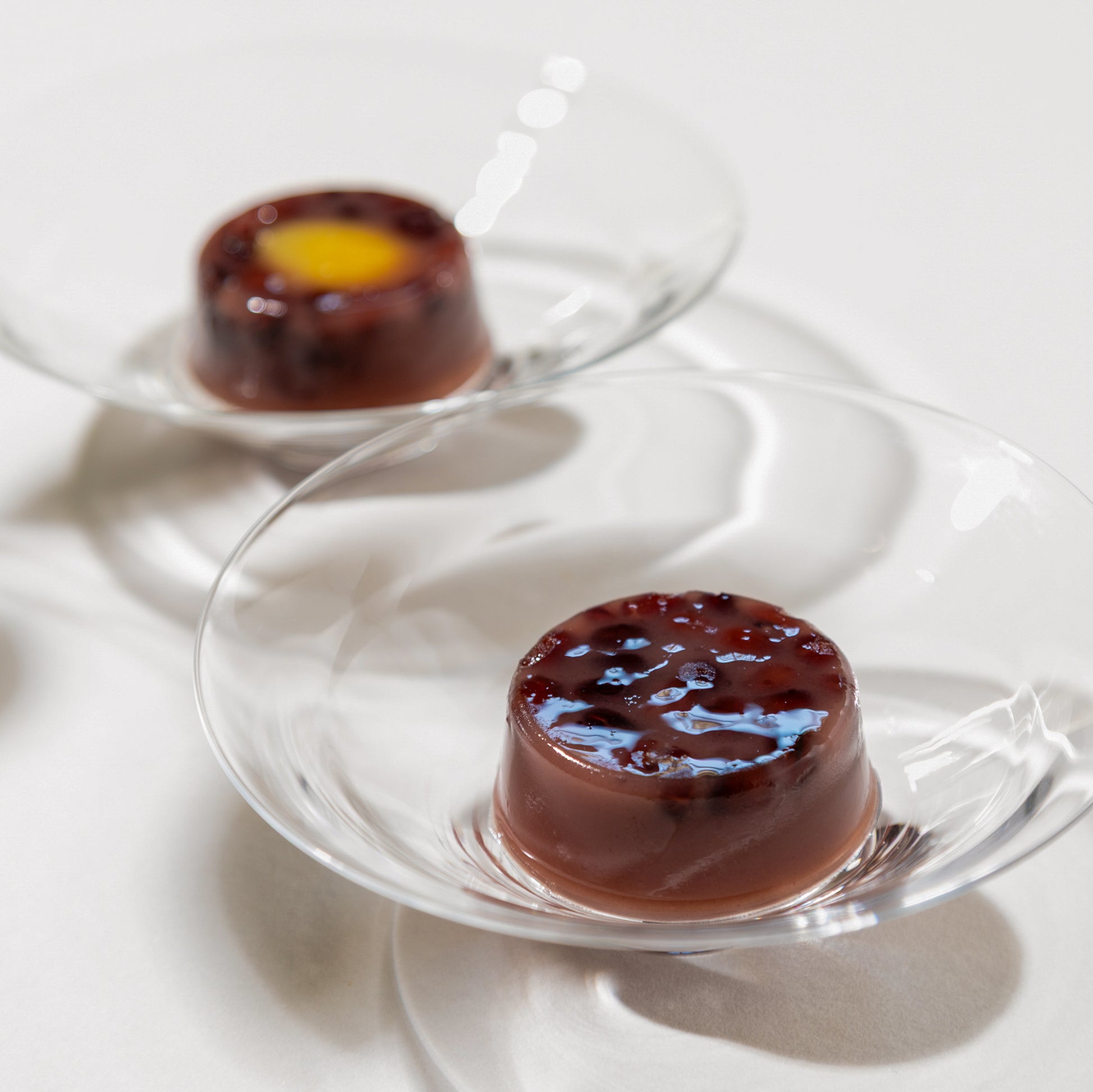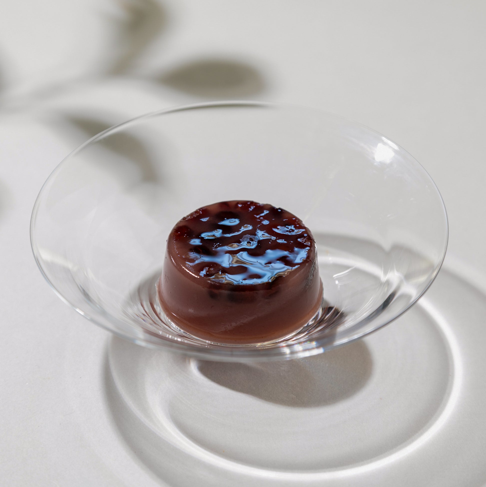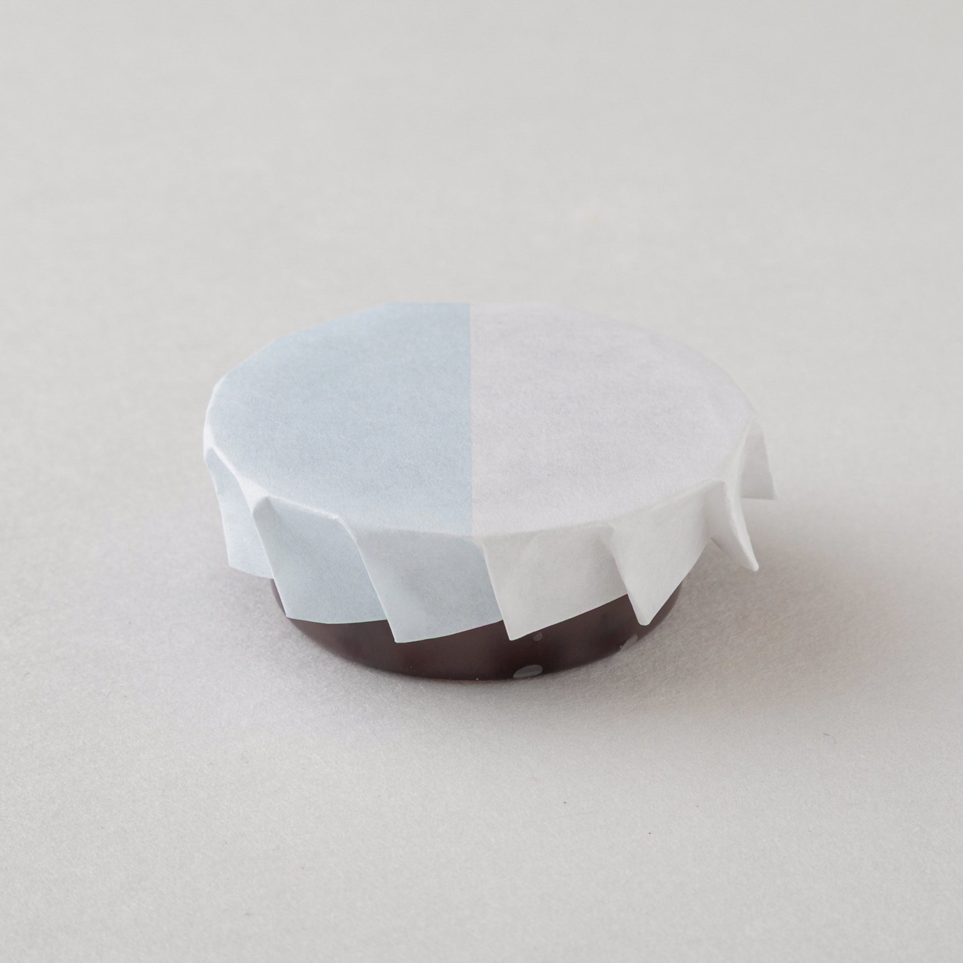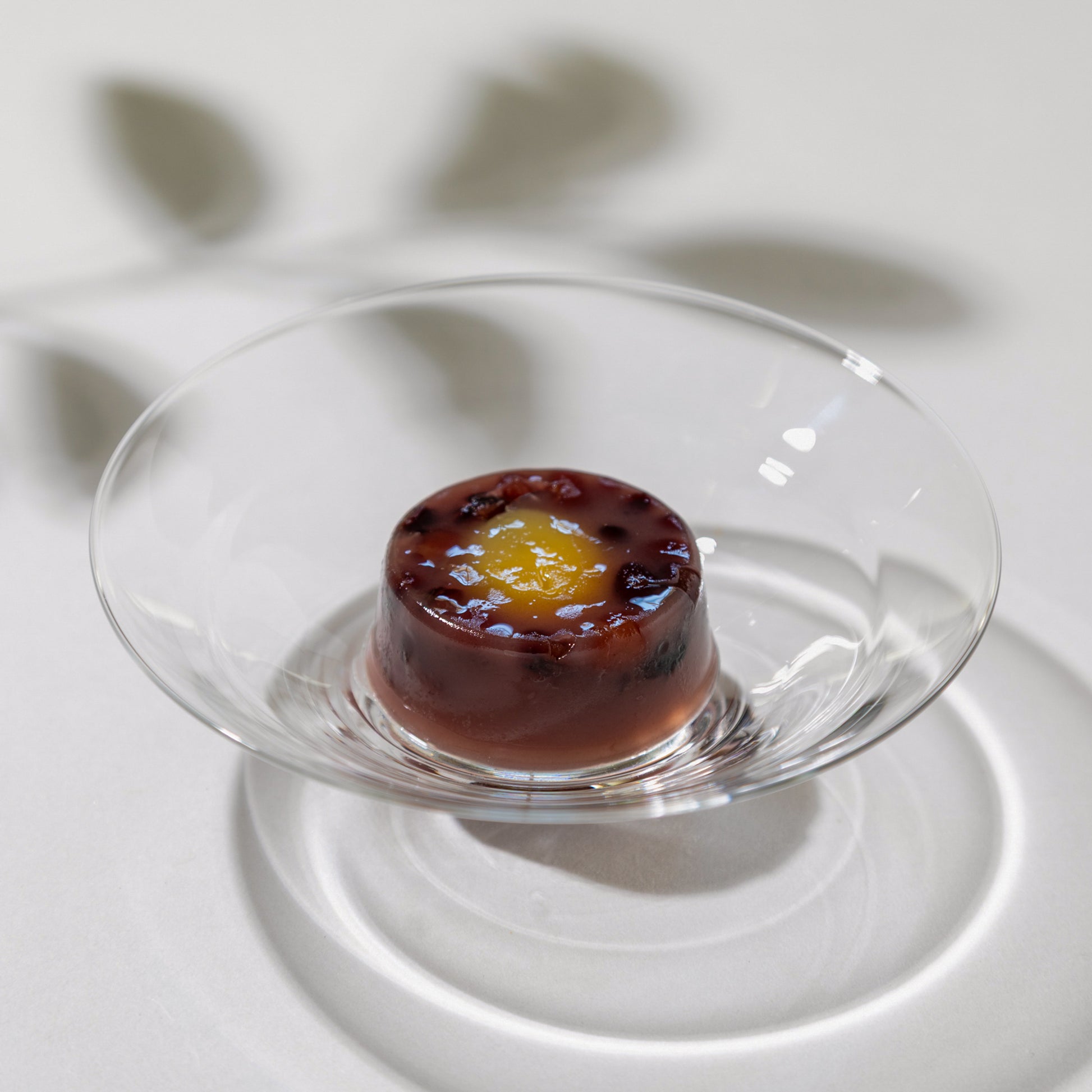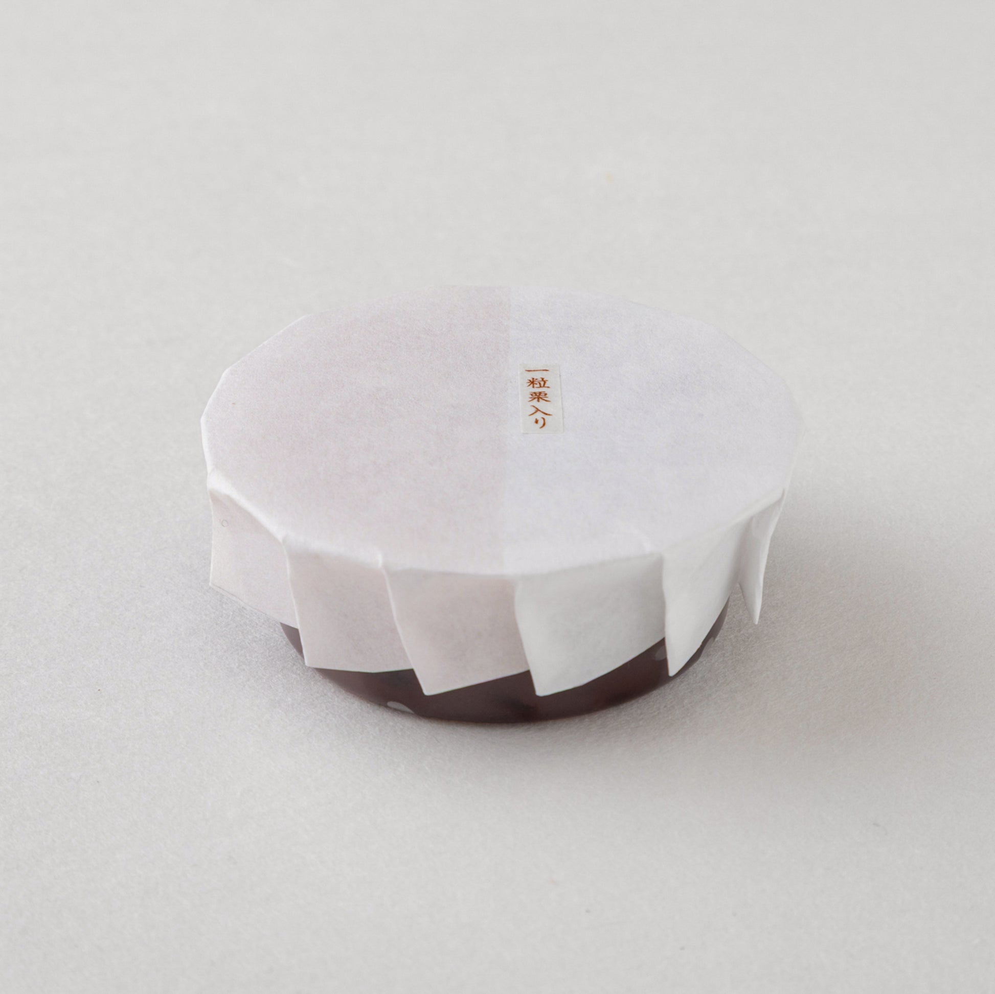 ふっくらと炊いた大納言小豆がたっぷり入った水羊羹。ほんのり香る日本酒(滋賀の地酒「浅茅生」)の風味とコクはとても贅沢です。